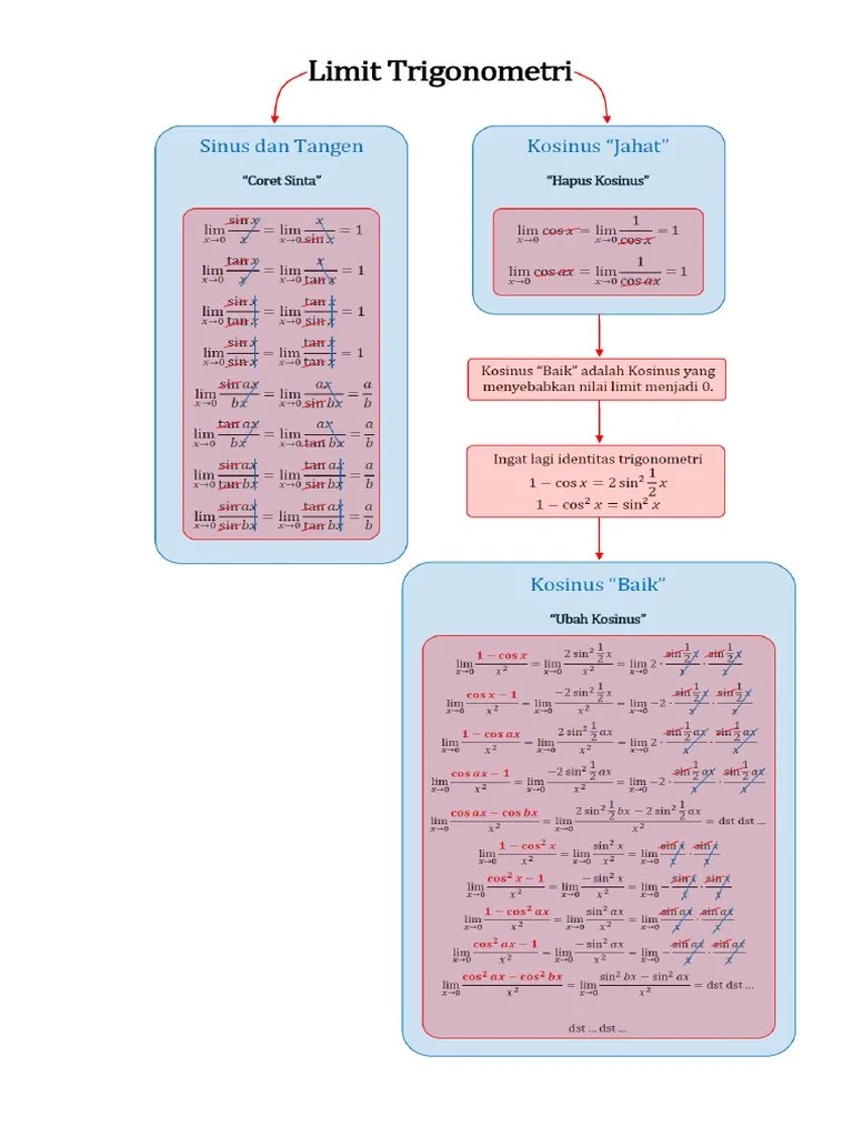 Cara cepat untuk menyelesaikan limit trigonometri yang memuat bentuk . Rumus perkalian sinus dan cosinus dapat dibuat juga kalimat ajaibnya sehingga mempermudah . Untuk menentukan rumus hasil kali sinus dan kosinus, hampir sama dengan menentukan rumus jumlah dan selisih sudut, hanya saja ada tambahan angka 2 setelah . Begitu banyak tips dan trik untuk menyelesaikan topik ini sehingga membantu quipperian mendapatkan nilai yang baik atas segala tes yang . Cara cepat menyelesaikan limit trigonometri menggunakan aturan sinta coret.